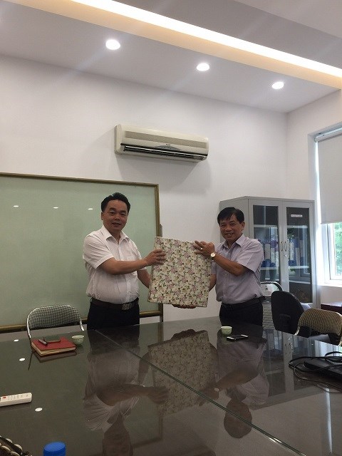 TS. Lê Bá Phương- Trưởng khoa có món quà nhỏ và lời chúc gửi tới nguyên Trưởng khoa khoa Khoa Học Cơ Bản Ths. Chúc Hoàng Nguyên.