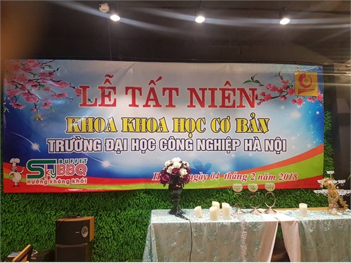 Hòa trong không khí vui mừng chuẩn bị chào đón năm mới Mậu Tuất 2018 của cả nước, tối ngày 04 tháng 02 năm 2018 khoa Khoa Học Cơ Bản- trường Đại Học Công nghiệp Hà nội đã tổ chức buổi gặp mặt tất niên cuối năm cho cán bộ giảng viên đã và đang công tác tại khoa cùng với gia đình tại nhà hàng Sky- BBQ. Buổi họp mặt tất niên là một nét đẹp văn hóa truyền thống được đặc biệt chú trọng của Ban chủ nhiệm khoa từ ngày thành lập khoa Khoa Học Cơ Bản đến nay, đây là dịp để cán bộ giảng viên trong khoa nhìn lại hành trình suốt một năm cống hiến, giảng dạy và công tác cùng với sự hỗ trợ của người thân, đồng thời cũng là dịp để các gia đình cán bộ giảng viên đã và đang công tác trong khoa giao lưu, gặp mặt và xích lại gần nhau hơn. Tại đây, trong không khí rộn ràng của những ngày cuối năm Tiến sĩ Lê Bá Phương – Trưởng khoa đã chia sẻ những thuận lợi và những khó khăn trong năm Đinh Dậu vừa qua. Tiến sĩ Lê Bá Phương đặt niềm tin với sự nỗ lực của toàn thể cán bộ giảng viên trong khoa, năm Mậu Tuất 2018 khoa Khoa Học Cơ Bản sẽ gặt hái được nhiều thành công hơn. Cũng tại buổi gặp mặt này Tiến sĩ Lê Bá Phương thay mặt cho Ban chủ nhiệm khoa gửi tới toàn thể cán bộ, giảng viên đã và đang công tác tại khoa Khoa Học Cơ Bản cùng với gia đình sang năm mới An khang - Thịnh vượng- Hạnh phúc - Dồi dào sức khỏe.